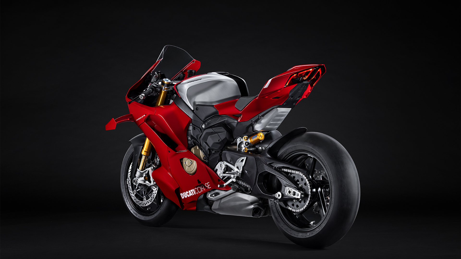 Desmosedici Stradale R da 998 cm3, realizzato per rispettare le specifiche del campionato mondiale Superbike, capace di erogare 218 CV a 15.750 giri/minuto, che possono diventare 239 CV grazie allo scarico racing e all’olio Shell Performance by Ducati Corse. Il motore stradale Ducati più vicino a quello della DesmosediciGP. Omologato Euro 5+, riduce le emissioni senza perdere performance, con curve di coppia e potenza più alte lungo tutto l’arco di erogazione e 4 CV in più a 16.000 rpm che si traducono in un allungo superiore.